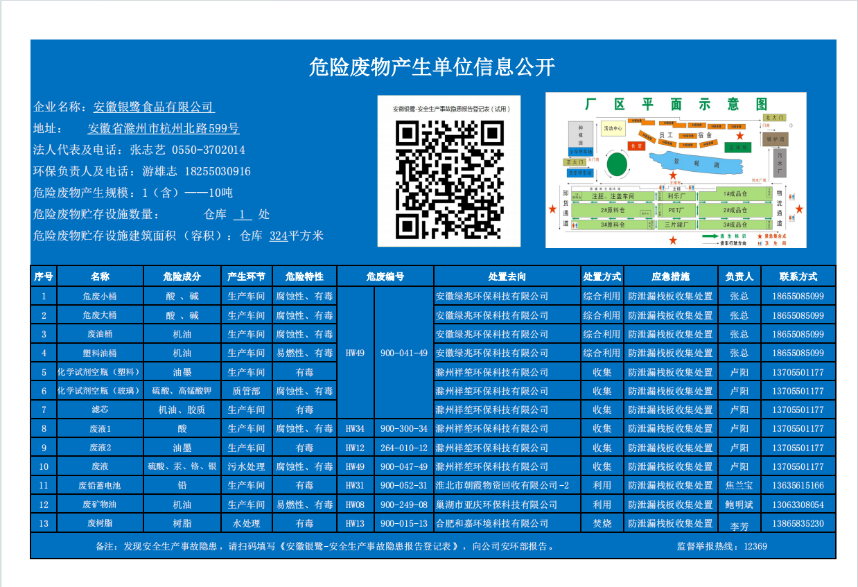安徽基地2024年危險廢物產生單位信息公開