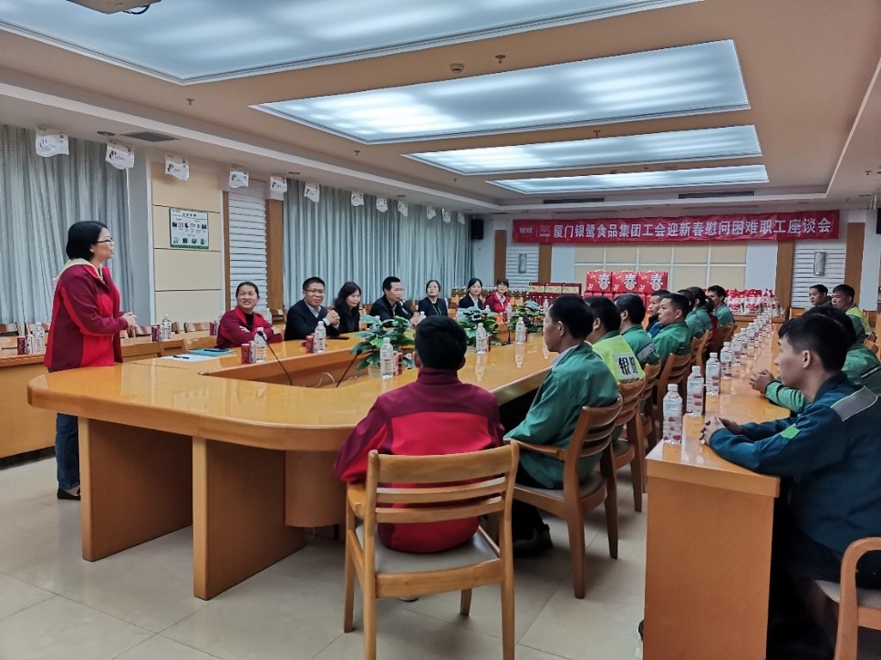 2020年1月15日上午,廈門銀鷺食品集團工會委員會迎新春慰問困難職工座談會在銀鷺廈門生產(chǎn)基地舉行。
