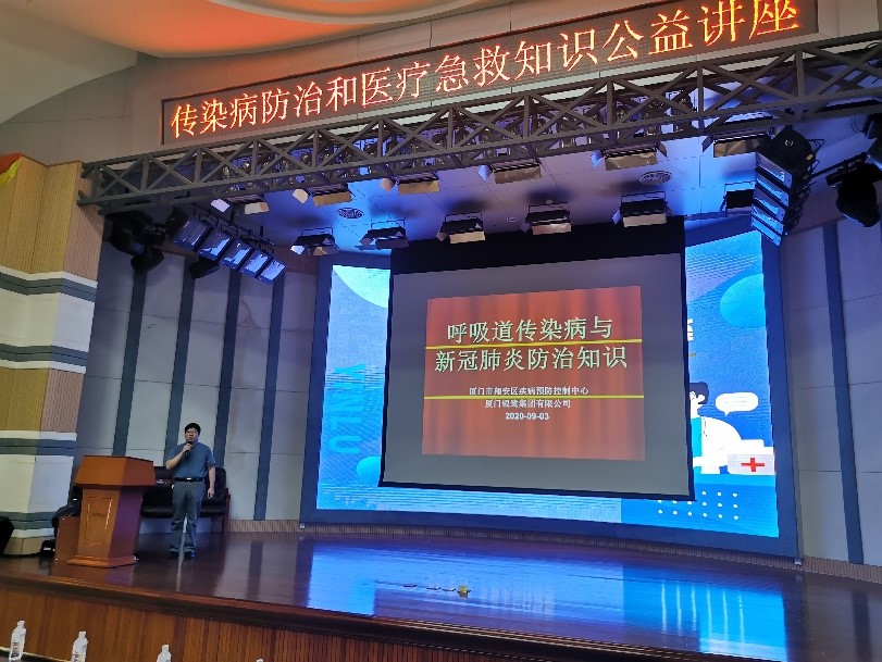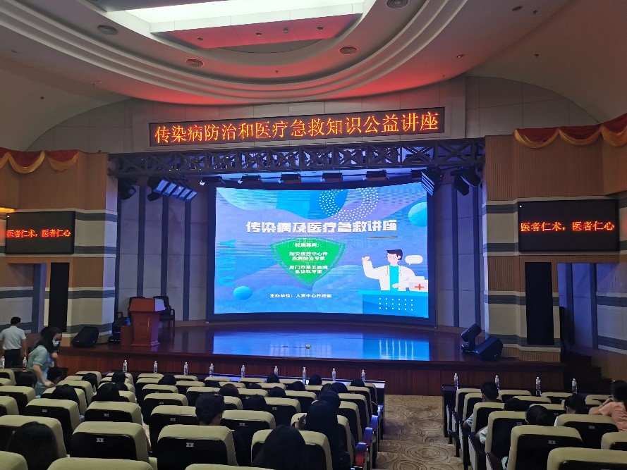 講座于9月2日下午在總部3F大禮堂進(jìn)行,翔安區(qū)疾控中心傳染病防治專家葉醫(yī)師、廈門市第五醫(yī)院急診科張護(hù)士及其團(tuán)隊為大家授課。
